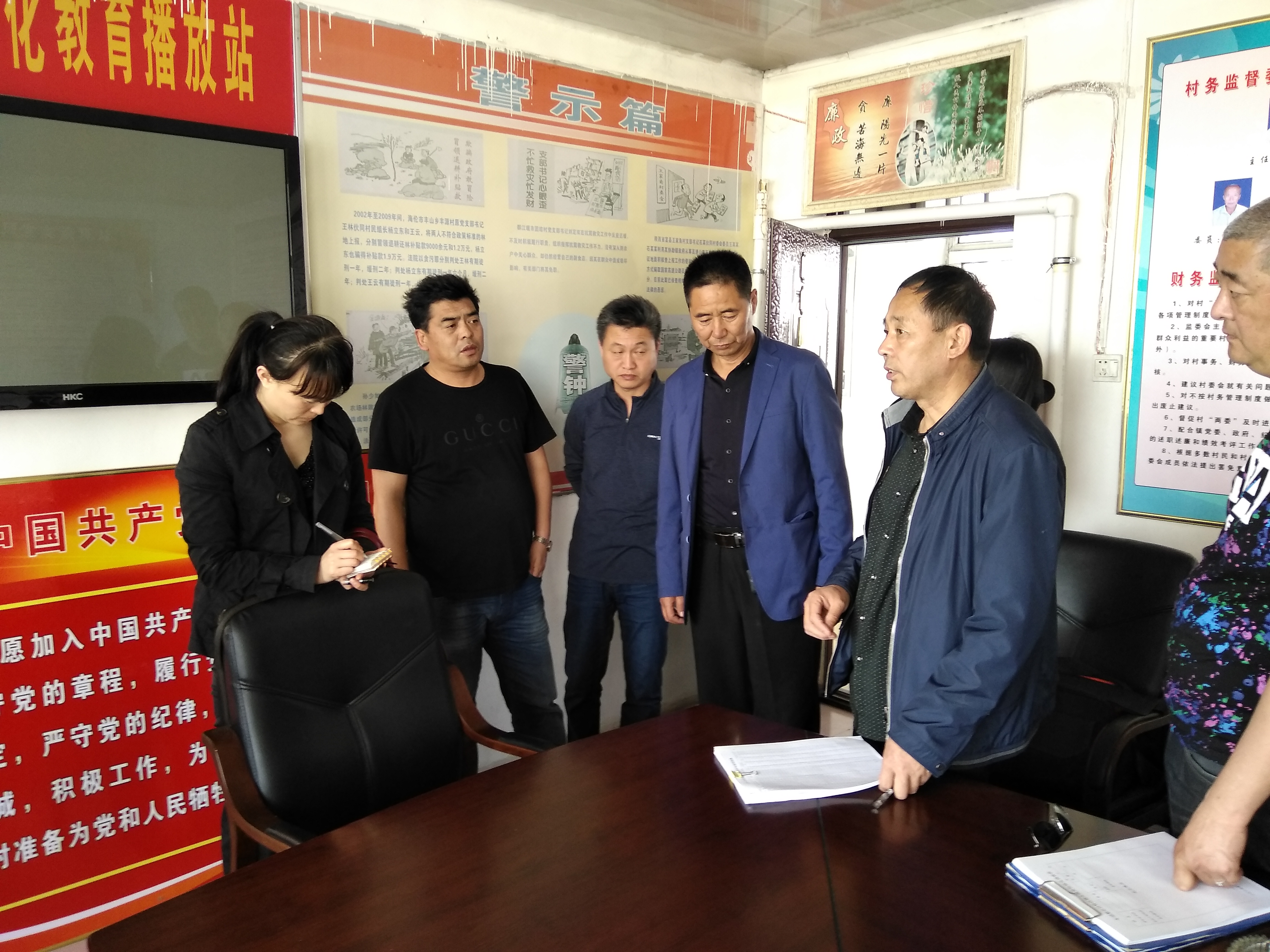在各乡镇,检查组人员听取了乡镇纪检干部对所属村屯两委成员自检自查情况的汇报,了解了各乡镇是否存在土地发包不履行竞价程序、不提请村民会议集体讨论决定、私下签订转让承包合同、违规发放粮食直补金等行为。